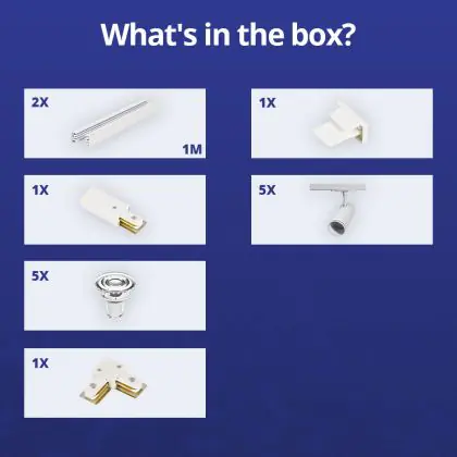 | Nome del fabbricante | Complete L shaped 1-Phase Track Set White incl. 5x Spot fixture + GU10 2700K 3W Dim – 1 x 1 meter i | |