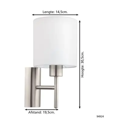 Eglo Luce Da Parete Pasteri Acciaio Nichel Satinato | IP20 - Adatto per 1x E27