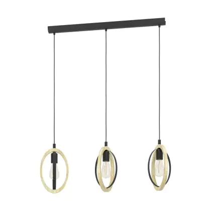 Eglo Luce Pendente Basildon Acciaio Legna Nero Marrone | IP20 - Adatto per 3x E27
