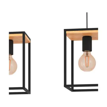 Eglo Luce Pendente Libertad Acciaio Legna Nero Marrone | IP20 - Adatto per 3x E27
