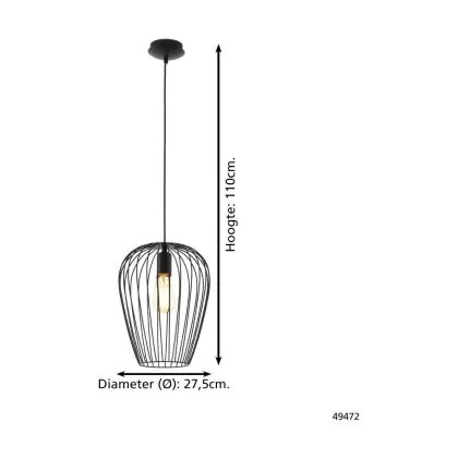 Eglo Luce Pendente Newtown Acciaio Nero | IP20 - Adatto per 1x E27