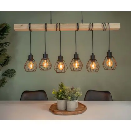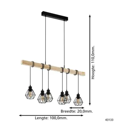 Eglo Luce Pendente Townshend 5 Acciaio Legna Nero | IP20 - Adatto per 6x E27