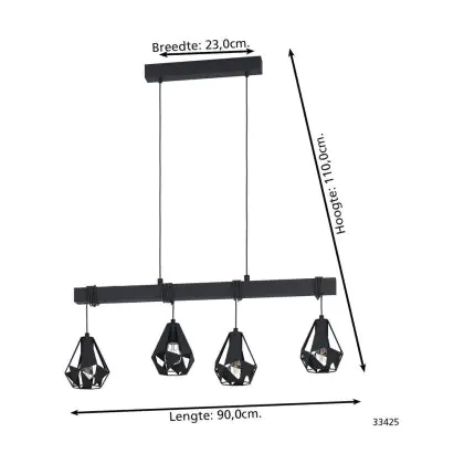 Eglo Luce Pendente Townshend 7 Acciaio Legna Nero | IP20 - Adatto per 4x E27