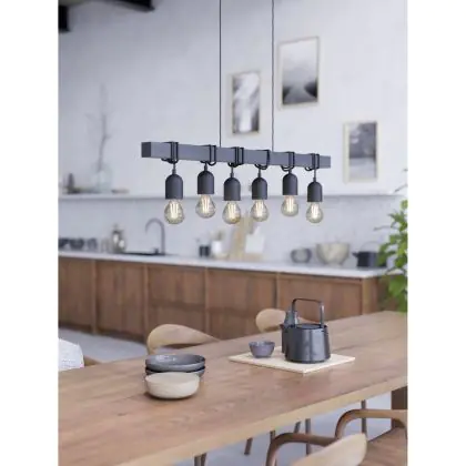 Eglo Luce Pendente Townshend Acciaio Nero | IP20 - Adatto per 6x E27