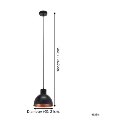Eglo Luce Pendente Truro 1 Acciaio Nero Rame | IP20 - Adatto per 1x E27