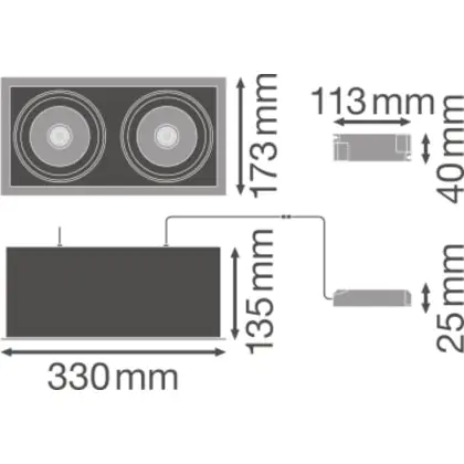 Descrizione Ledvance Faretti LED Piazza Multi Inclinabile Nero-Bianca 2x30W 5400lm 38D - 840 Bianco Freddo | Ritaglio 320x160mm