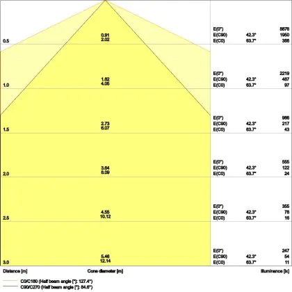 L'apertura del fascio luminoso indica l'angolo del fascio di luce proveniente da una lampada o lampadina. Si misura in gradi (D) e più piccolo è l'angolo, più piccola è l'apertura del fascio di luce.