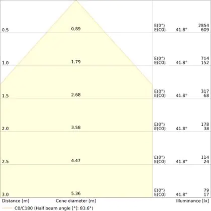 L'apertura del fascio luminoso indica l'angolo del fascio di luce proveniente da una lampada o lampadina. Si misura in gradi (D) e più piccolo è l'angolo, più piccola è l'apertura del fascio di luce.