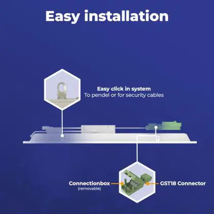 Questo pannello LED di Noxion ha dimensione 60x60cm, che lo rende perfetto da montare in un soffitto a griglia, ma può anche essere montato a superficie con degli accessori appositi. Inoltre consuma solo 28 W ma ha una potenza luminosa di 3920 lm, il che lo rende un perfetto sostituto dei tubi fluorescenti 4x18 W. I costi energetici saranno fino al 70% più bassi rispetto a un apparecchio convenzionale.