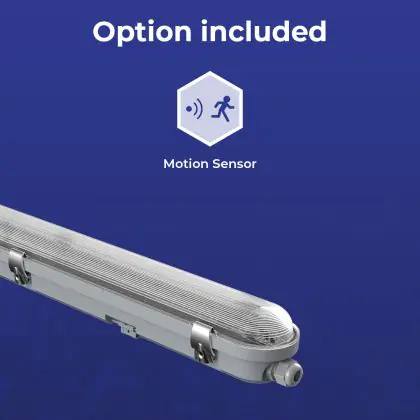 Descrizione Noxion Stagna LED Poseidon V3.0 30W 3900/4200lm - 830-865 CCT | 120cm - Cablaggio Entra/Esci (5x2.5mm2) - Sensore Di Movimento E Luce