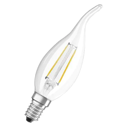 La lampada Osram Classic LED E14 Piegato-tip candle Filamento Chiara 2.5W 250lm - 827 Bianco Molto Caldo | Sostitutiva 25W è il sostituto perfetto per le tue vecchie lampade 25W con attacco a vite piccolo E14 grazie alla sua tecnologia LED. Passare a LED ti offrirà molti vantaggi!