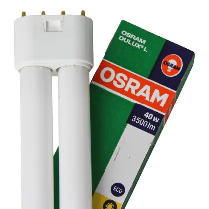 Osram Dulux L 40W 830 è una lampada fluorescente compatta che presenta una potenza pari a 40 W ed attacco 2G11 a 4 perni. È indicata per un’applicazione in ingressi, atri o scalinate di uffici, edifici pubblici, hotel e fabbriche.