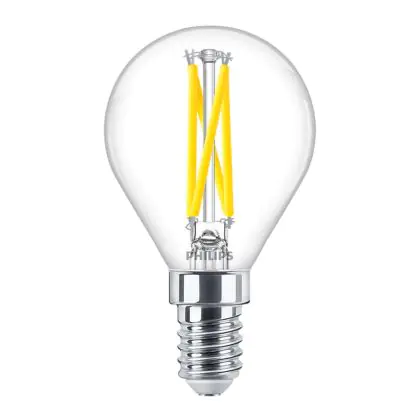 La lampada Philips MASTER LED E14 Sferica Filamento Chiara 2.5W 340lm - 922-927 Dim To Warm | Miglior Resa Cromatica - Dimmerabile - Sostitutiva 25W è il sostituto perfetto per le tue vecchie lampade 25W con attacco a vite piccolo E14 grazie alla sua tecnologia LED. Passare a LED ti offrirà molti vantaggi!