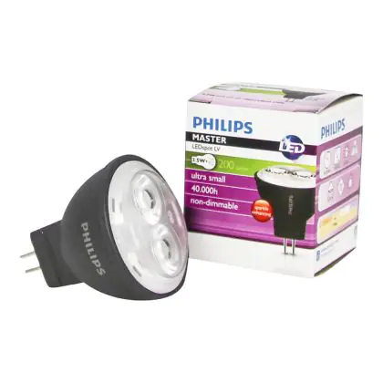 La Philips Master LED Faretti GU4 MR11 3.5W 200lm 24D - 827 | Sostitutiva 20W è perfetta per la sostituzione della classica lamapda alogena20W GU4 con colore della luce 827 Bianco Molto Caldo. Questa lampadina ha una forma Spot con un diametro di 50mm. La distanza tra I due pins è di 5.3mm. Queste lampade hanno bisogno di un trasformatore poiché operano a 12V. I trasformatori possono essere trovati in "Accessori" su questa pagina. Qual’è il trasformatore adatto? Dipende dal numero di lampade che si vuole installare. Il nostro servizio di vendita e assistenzati ti aiutera nella scelta. Passare a LED offre molti vantaggi!